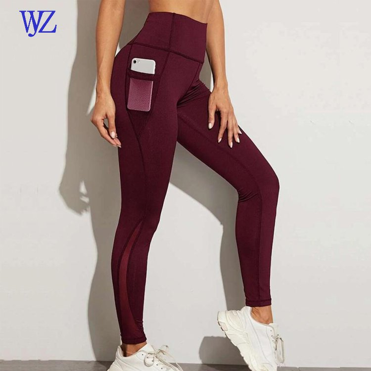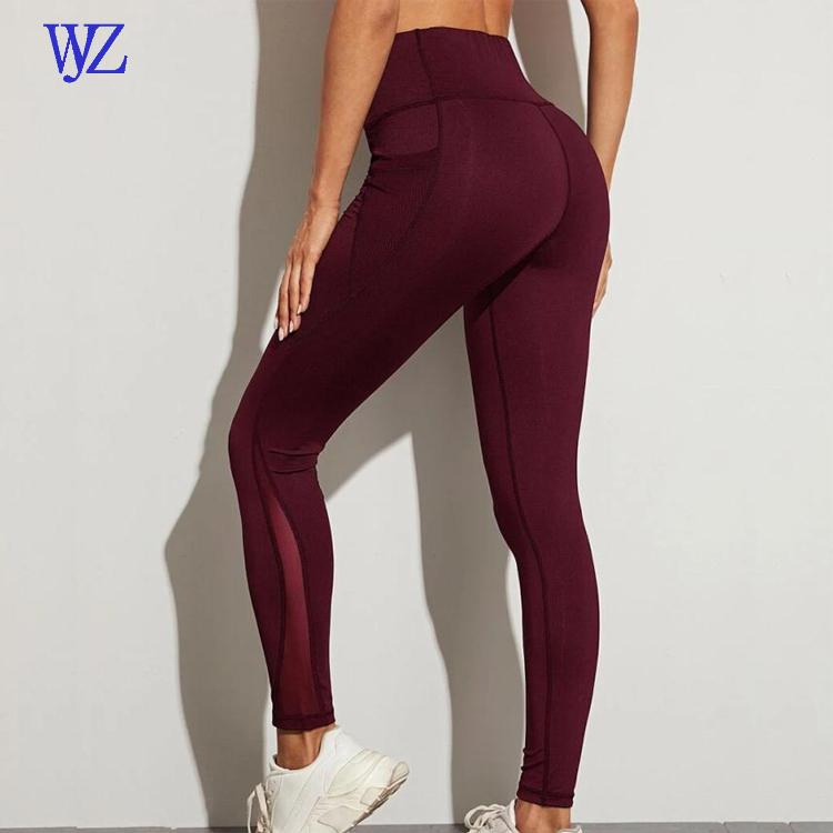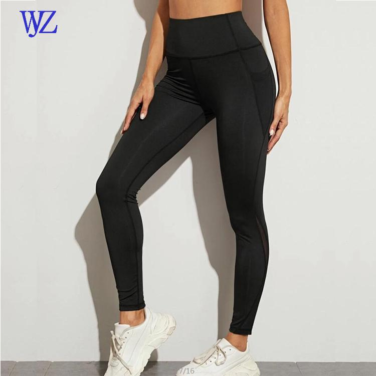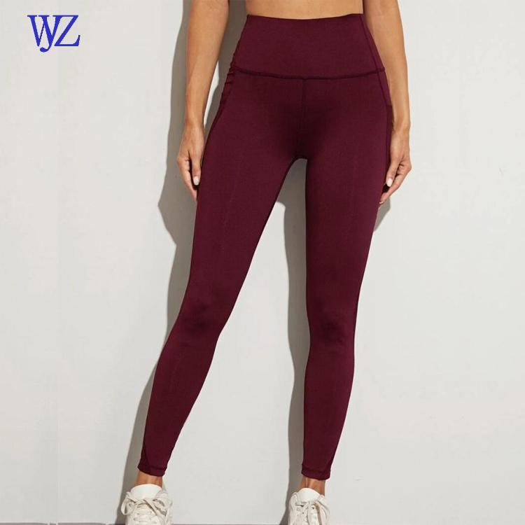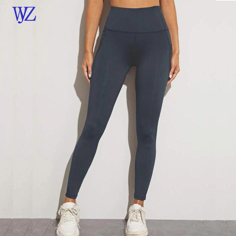 女性高腰运动紧身裤,有两个侧口袋,非透明腹部控制瑜伽裤运动装