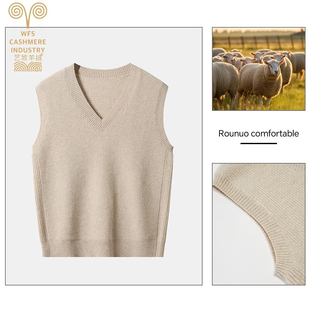 时尚无袖保暖羊毛羊绒背心女士高品质休闲羊毛背心V领羊绒背心