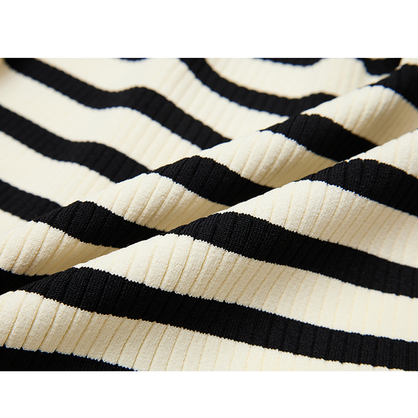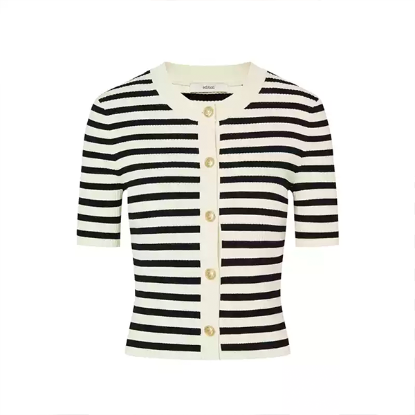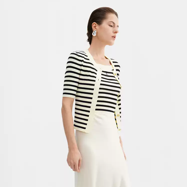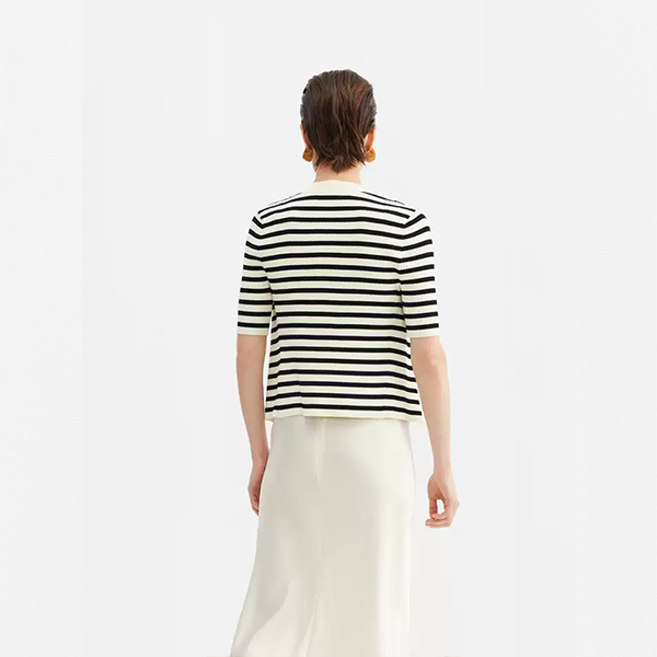 Women′S冰丝条纹毛衣-宽松合身中袖开衫