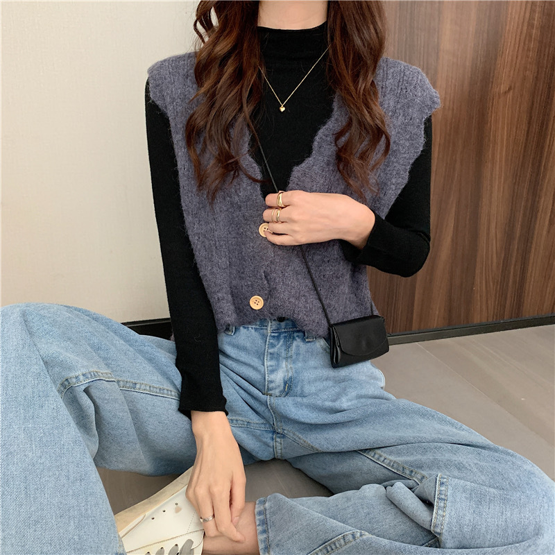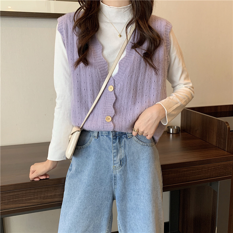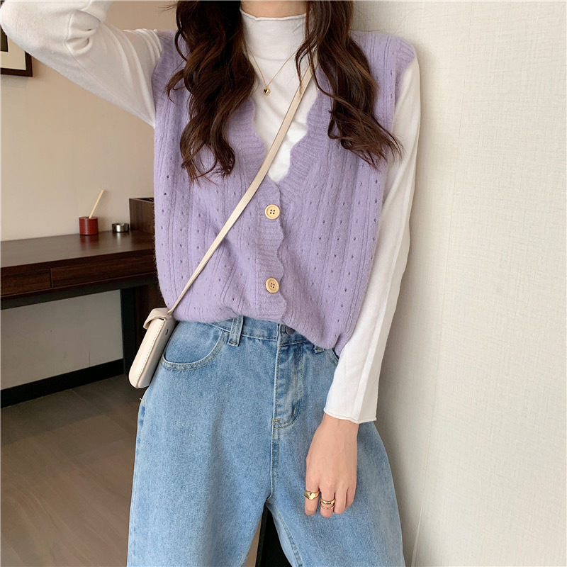 镂空针织背心开衫Women′S秋冬新款V领背心毛衣披肩
