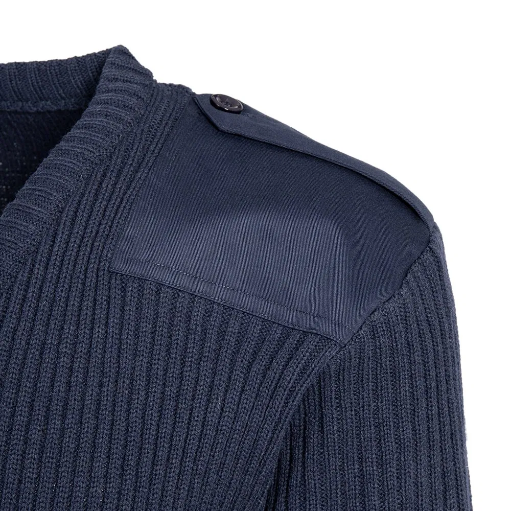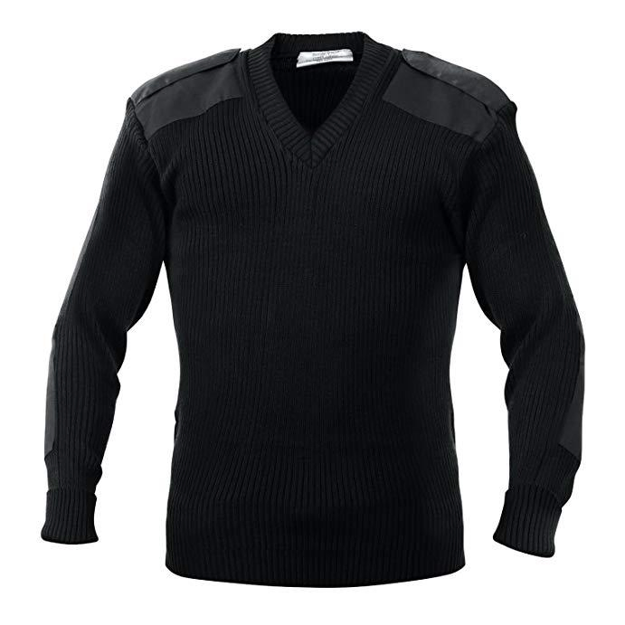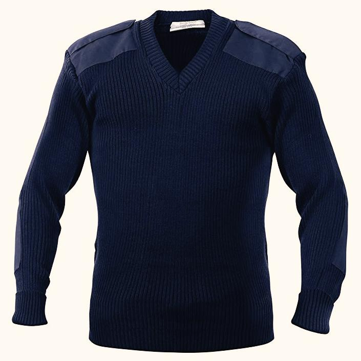 野外风格套头衫V领丙烯酸毛衣与补丁